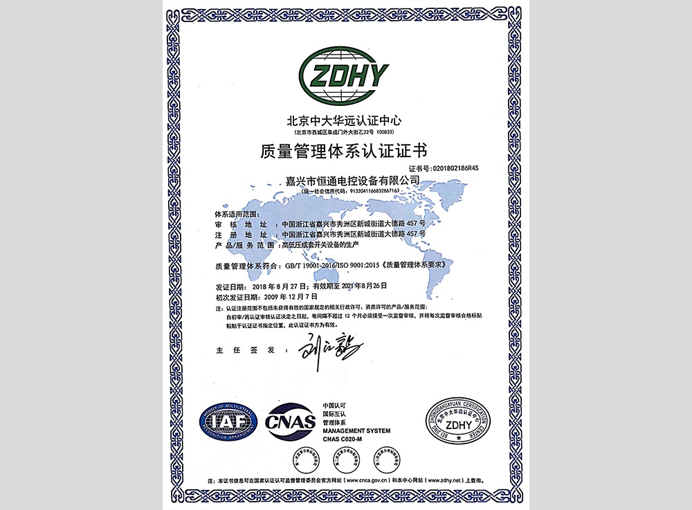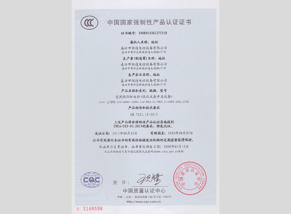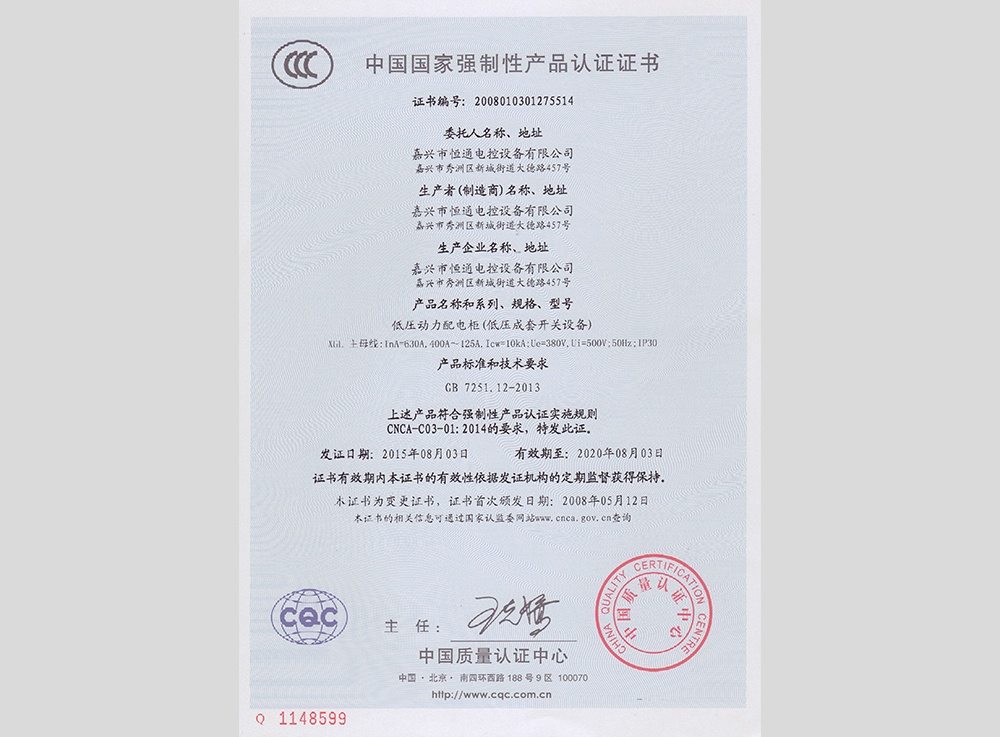 設立嘉興市恒通電控設備有限公司,生產(chǎn)經(jīng)營(yíng)高低壓成套配電設備。